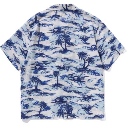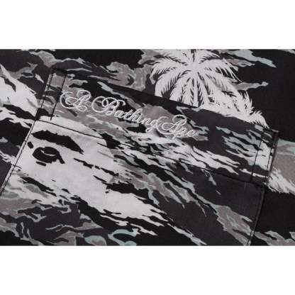 BAPE MENS PALM TREE CAMO OPEN COLLAR POCKET SS SHIRT