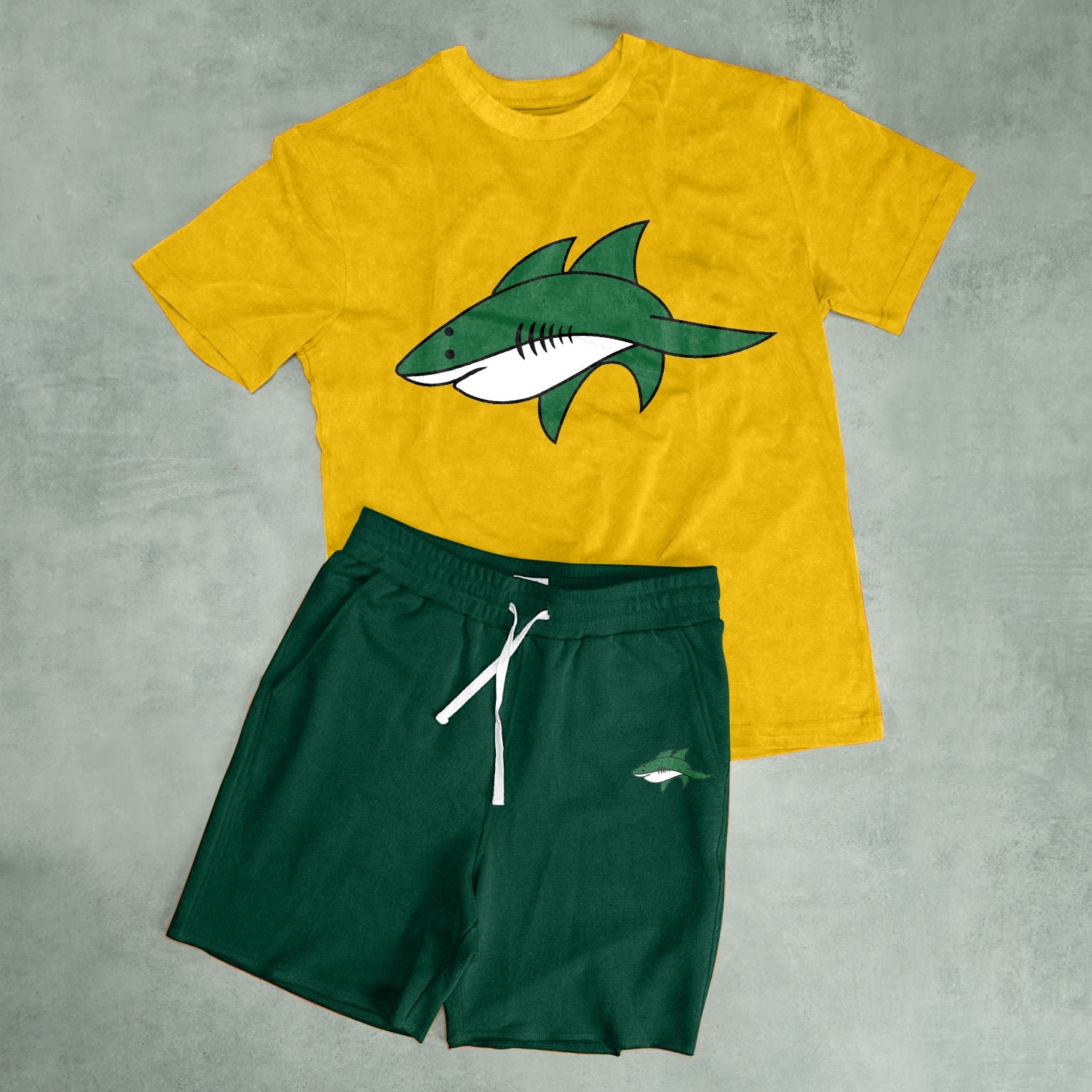Casual Cartoon Print Fashion Shark Fashion Street Shorts Short Sleeve Suit