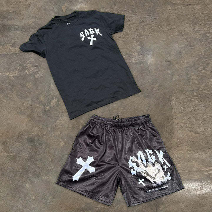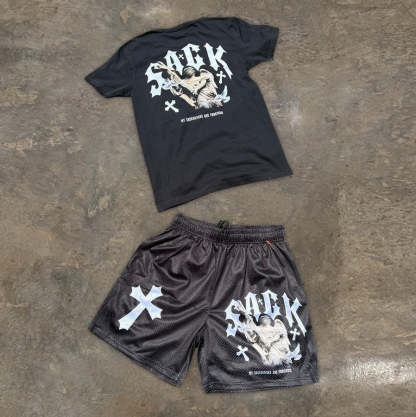 Casual Cross Angel Print T-Shirt Shorts Set