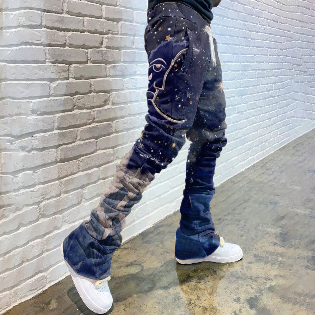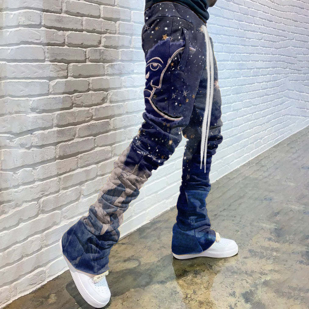 Casual Print Drawstring Flared Trousers