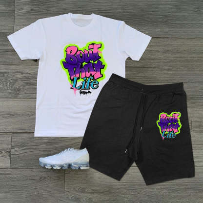 College style printed short-sleeved casual suit