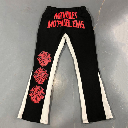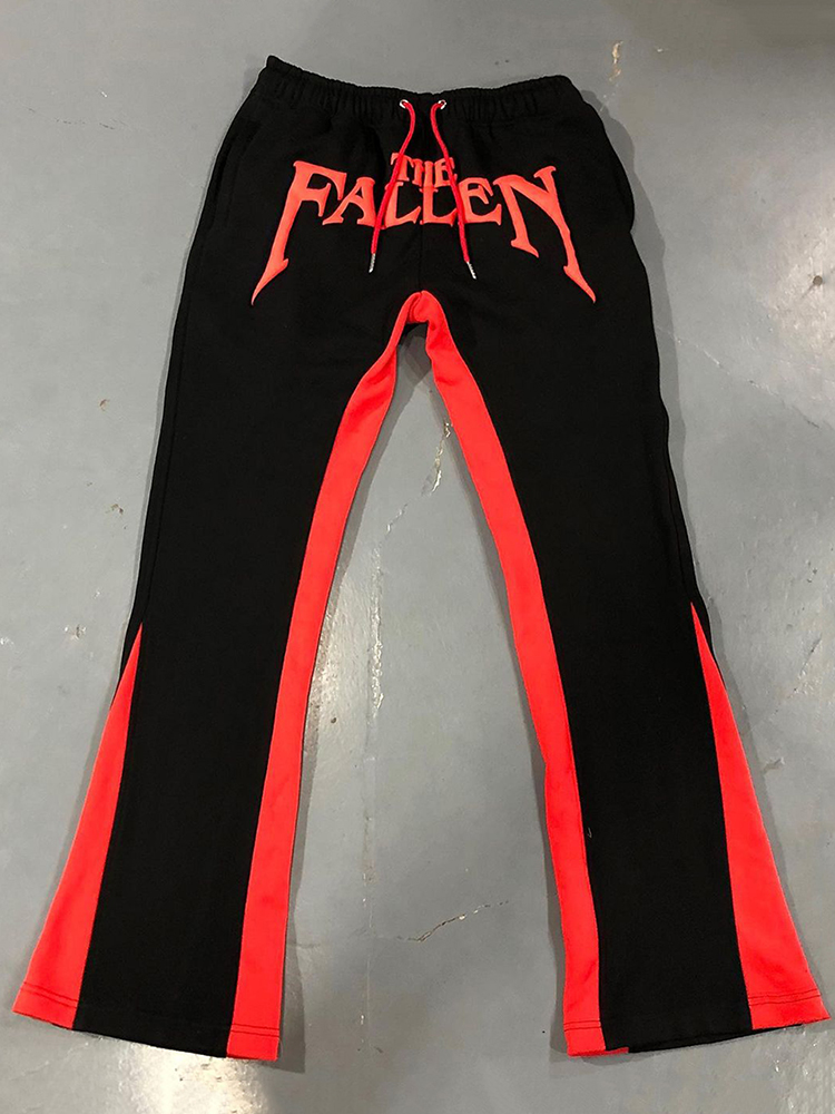 Color Block Simple Letter Printed Front And Back Casual Trousers