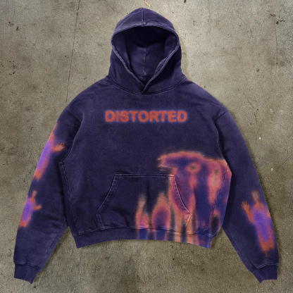 Distorted Print Long Sleeve Hoodies