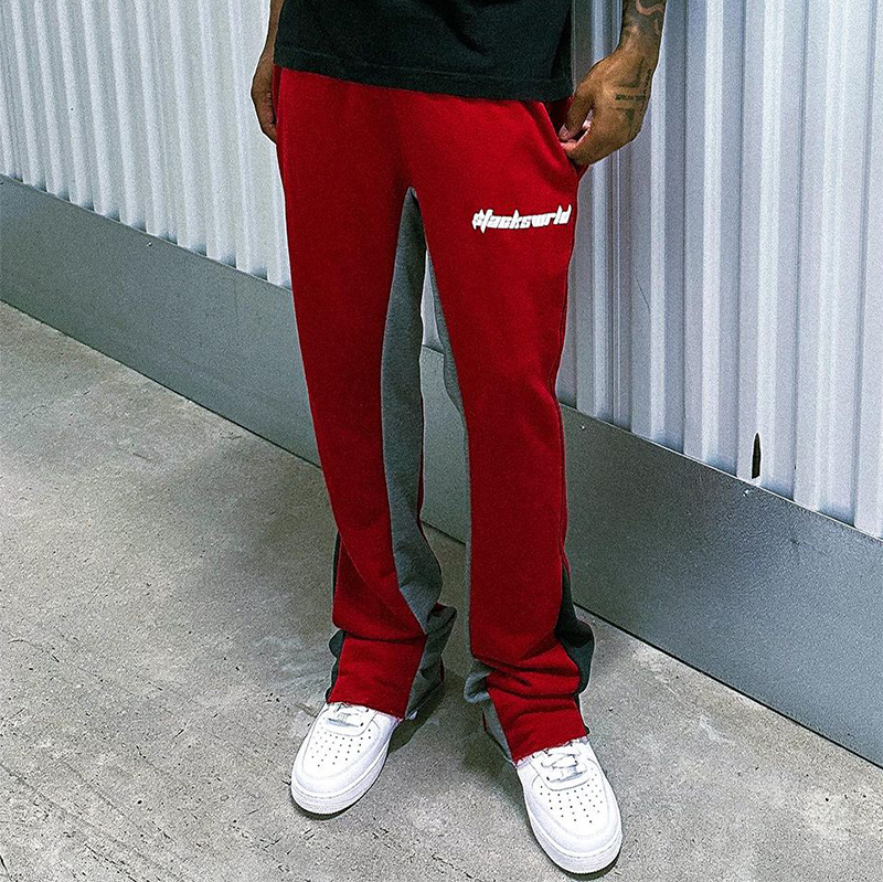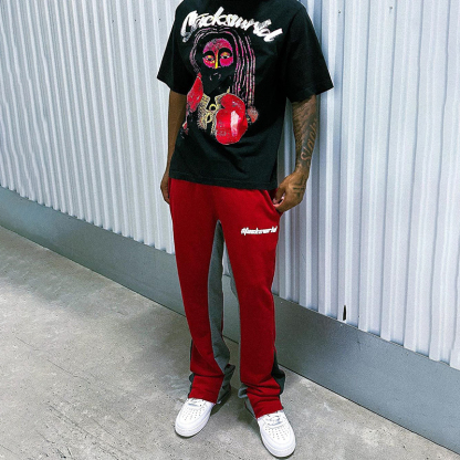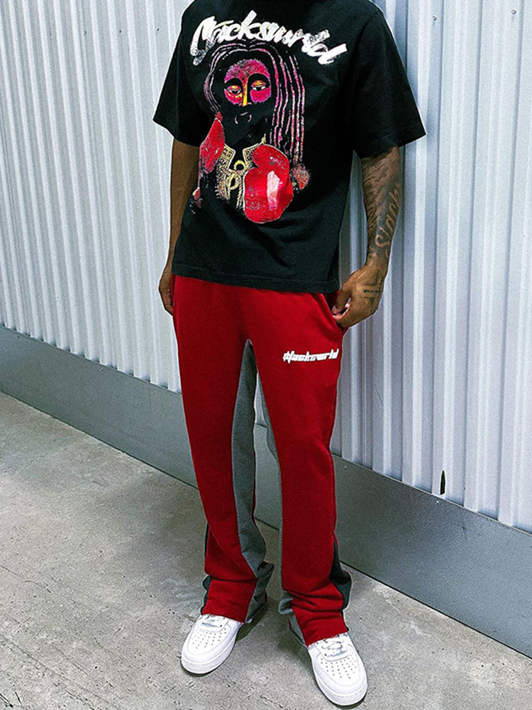 Red Basic Street Print Flared Sweats Trousers