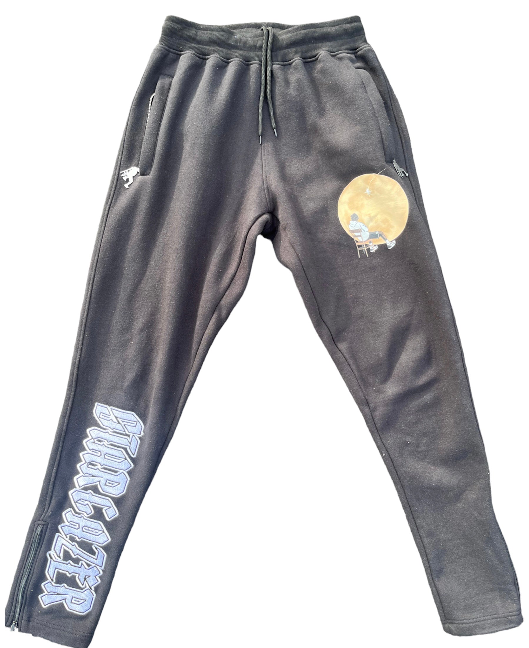 Our SAG Pants keep you comfy in organic cotton, with flared legs, digital print logo, and relaxed fit. The combination of comfortable fabric and intricate embroidery creates a unique and eye-catching piece of clothing that effortlessly blends comfort and fashion.