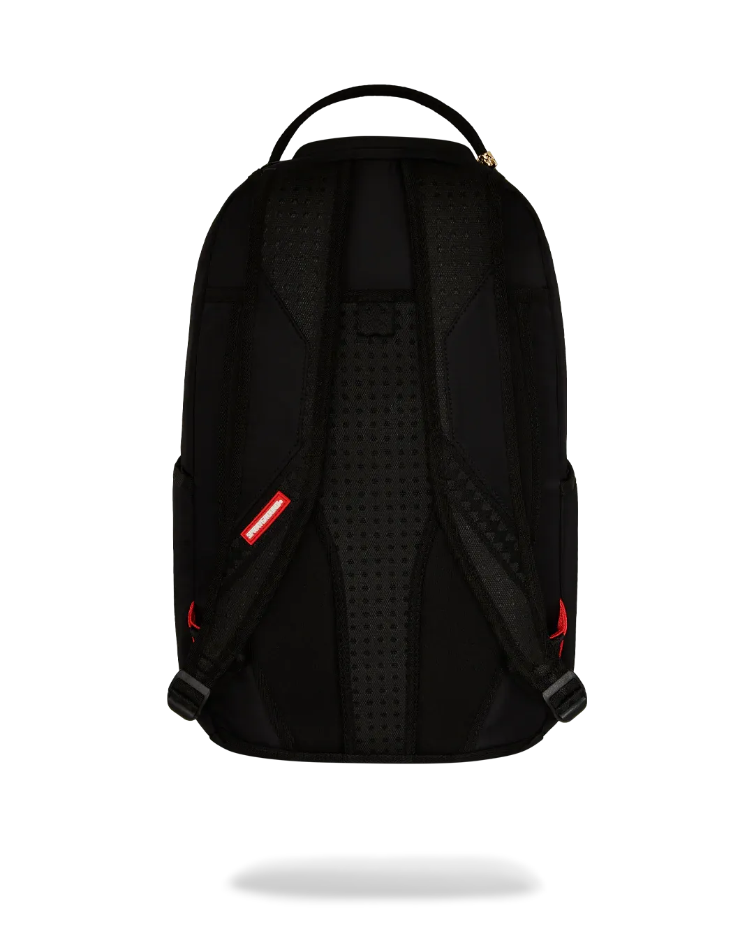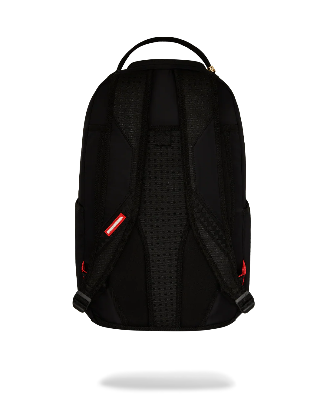 Dimensions: 18" x 6" x 11.5" • Front zipper pocket • Side pockets • Zippered Stash pocket • Separate velour sunglass compartment • Ergonomic mesh back padding • Adjustable Straps for custom sizing • Gold zippers with metal hardware • Metal "Sprayground Authentic" badge • Slide through back sleeve connects to carry-on luggage to free your hands