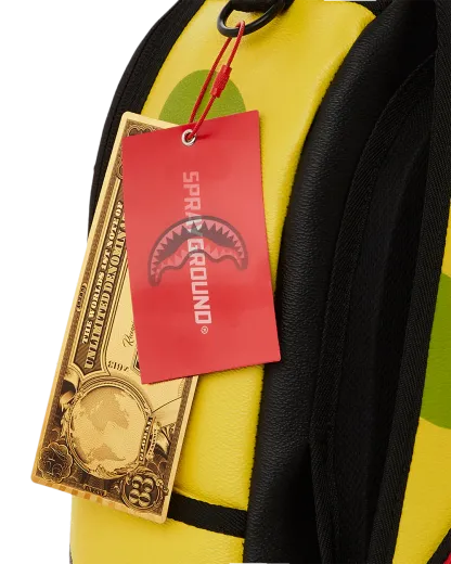Dimensions: 18" x 6" x 11.5" • Front zipper pocket • Side pockets • Zippered Stash pocket • Separate velour sunglass compartment • Ergonomic mesh back padding • Adjustable Straps for custom sizing • Gold zippers with metal hardware • Metal "Sprayground Authentic" badge • Slide through back sleeve connects to carry-on luggage to free your hands